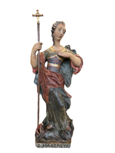 Réalisée vers 1770 dans l’atelier Michel Weyler à Ettelbruck, cette œuvre représente sainte Marguerite, protectrice des femmes et des mères.